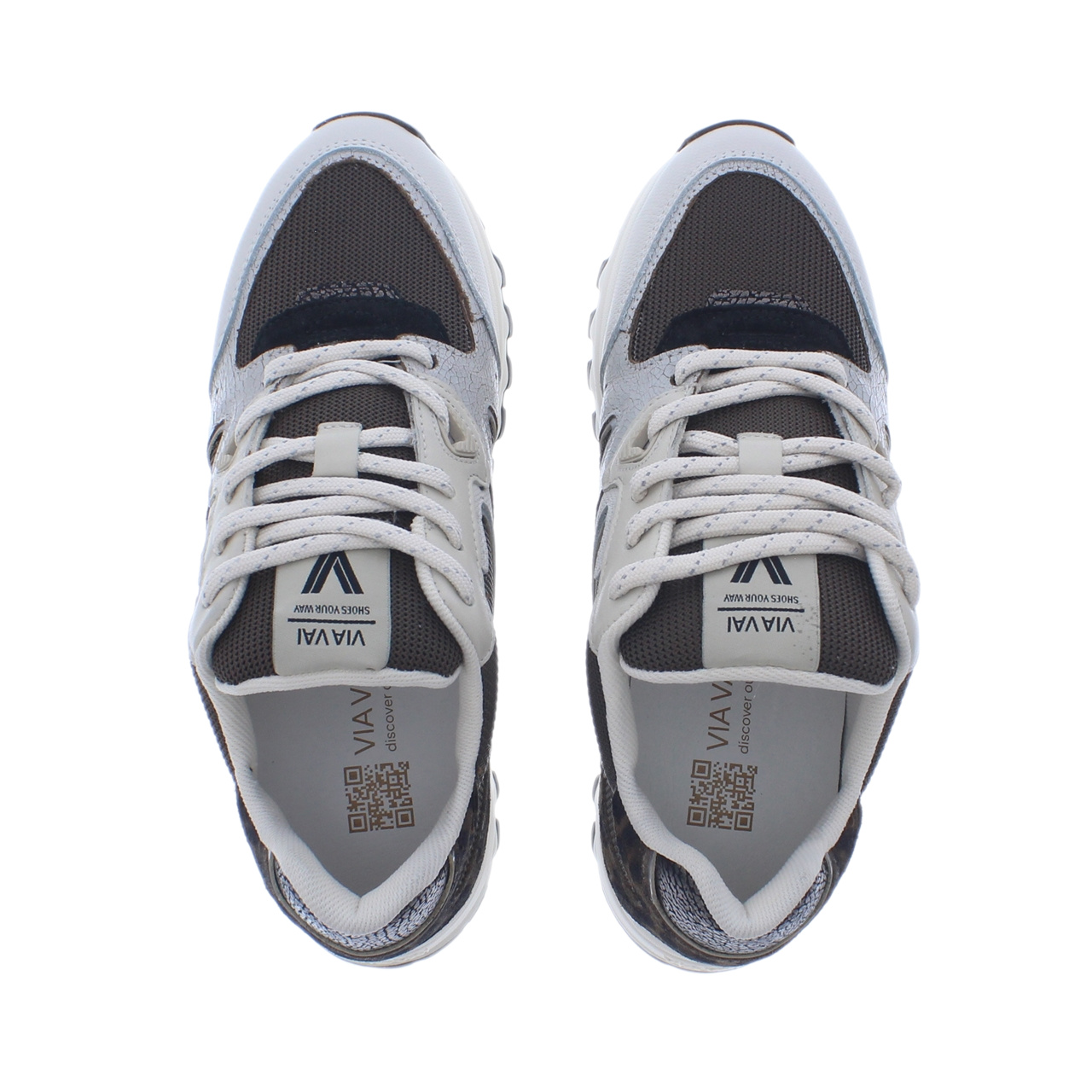 De schoen heeft een ronde leest en vetersluiting voor een comfortabele pasvorm. Het uitneembare voetbed biedt de mogelijkheid eigen zolen te gebruiken, terwijl de mesh binnenvoering zorgt voor ademend comfort. De chunky noppenzool en metallic details maken het model stoer, stijlvol én kenmerkend voor VIA VAI.