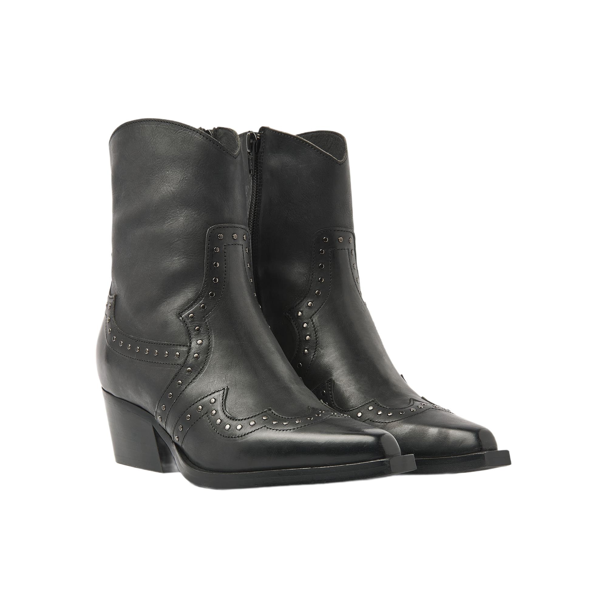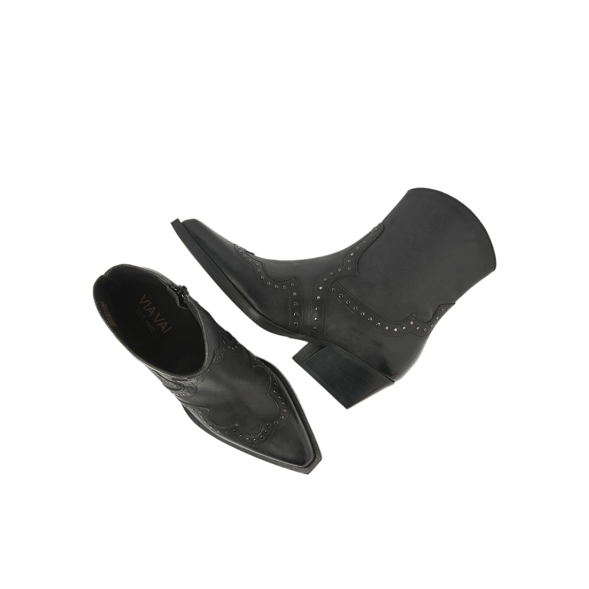 Het model van VIA VAI is uitgevoerd in leer aan de buitenkant en gevoerd met leer, wat zorgt voor een luxe look en een prettig gevoel rond de voet. De spits toelopende leest geeft de laars een verfijnde lijn, terwijl de hak tot 5 cm net dat beetje extra uitstraling toevoegt zonder te overheersen.