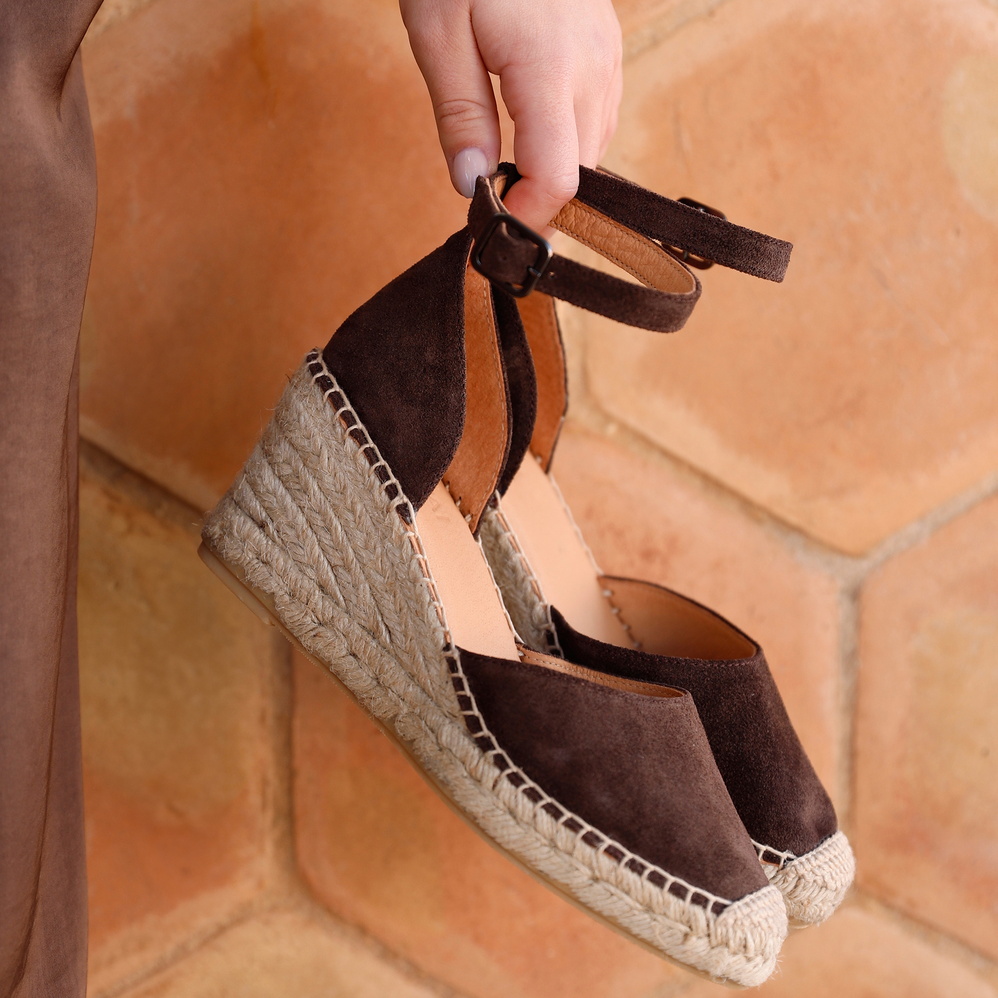 Op zoek naar een elegante zomerschoen met een vleugje boho-chic? De VIA VAI Flora espadrille in de kleur Sierra Noisette combineert stijl, comfort en zomerse flair. Deze lichtbruine espadrille is voorzien van een comfortabele sleehak van 6 cm, ideaal voor dagelijks gebruik of een zomerse gelegenheid. De buitenkant is uitgevoerd in zacht suède en de leren binnenkant zorgt voor een ademende pasvorm. De ronde leest en verstelbare gespsluiting geven je extra loopcomfort en een goede pasvorm.