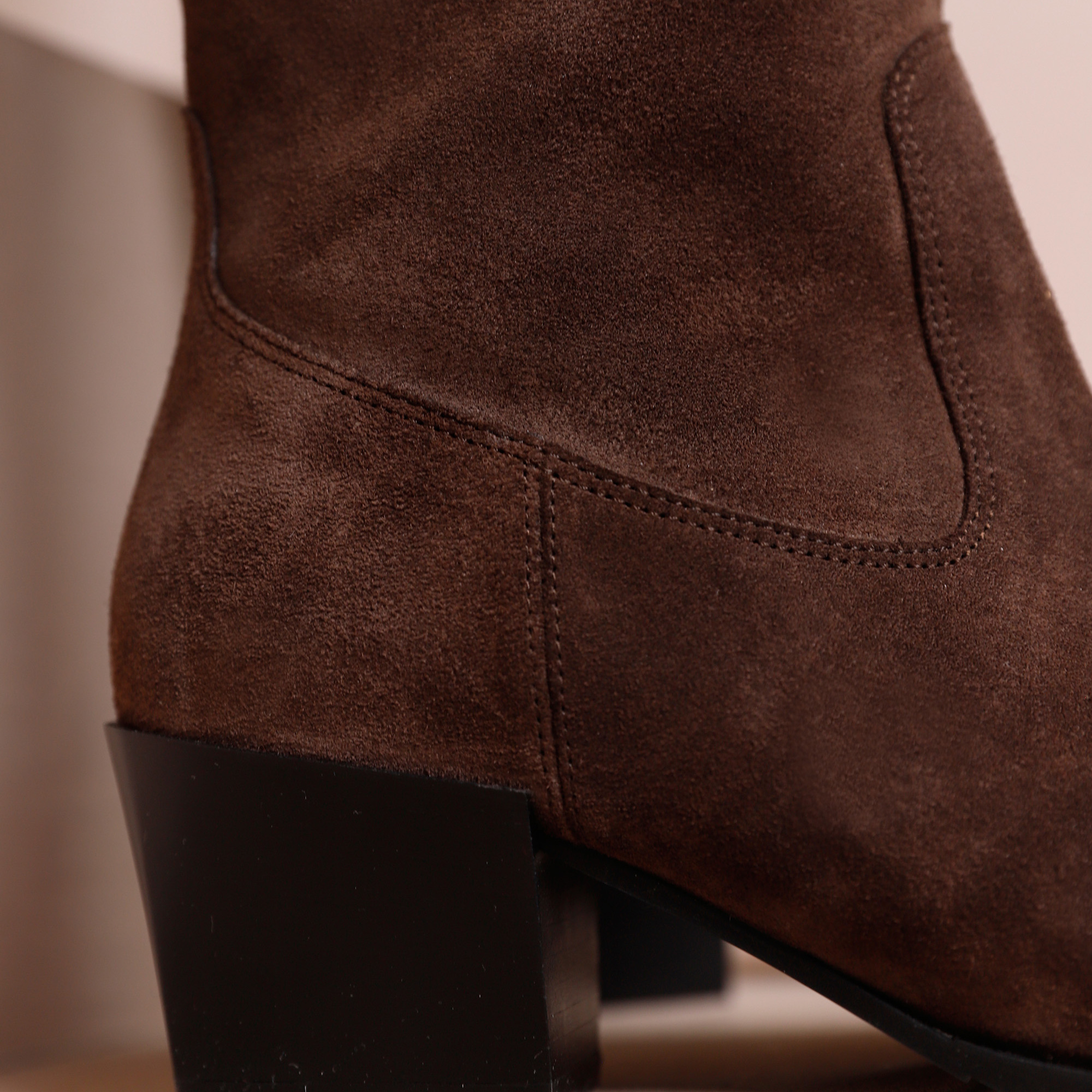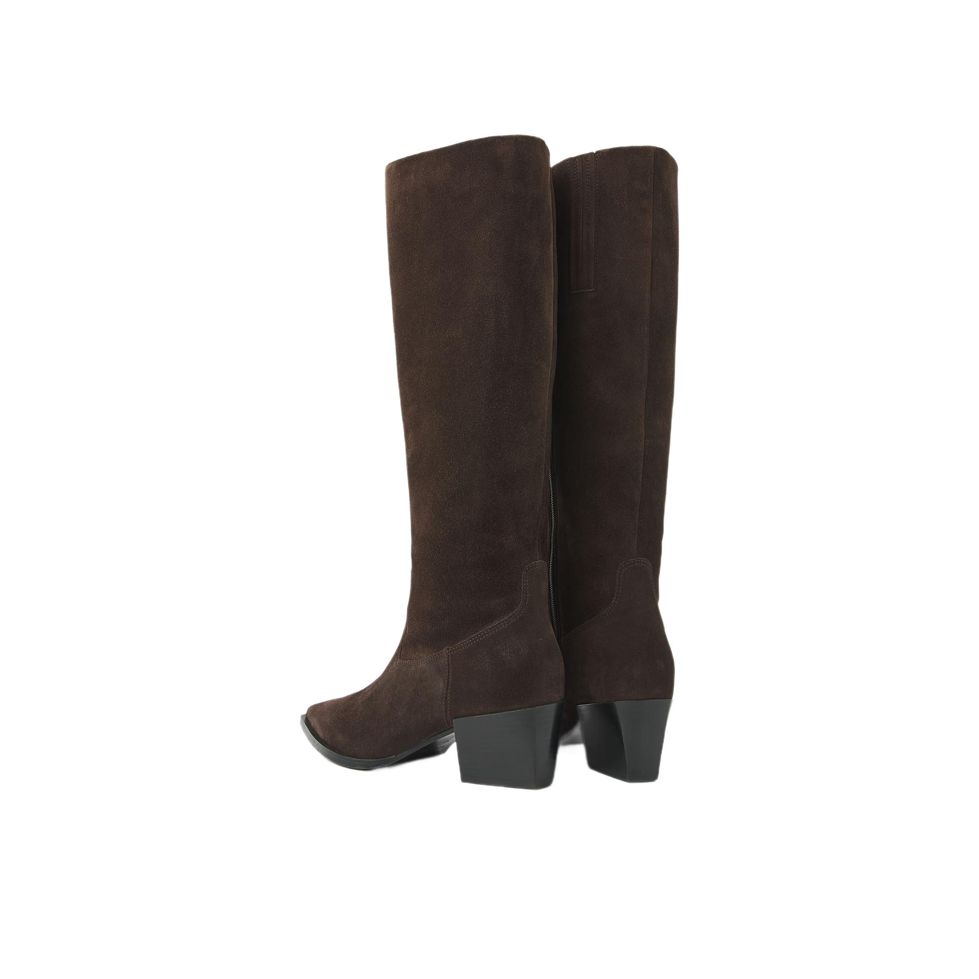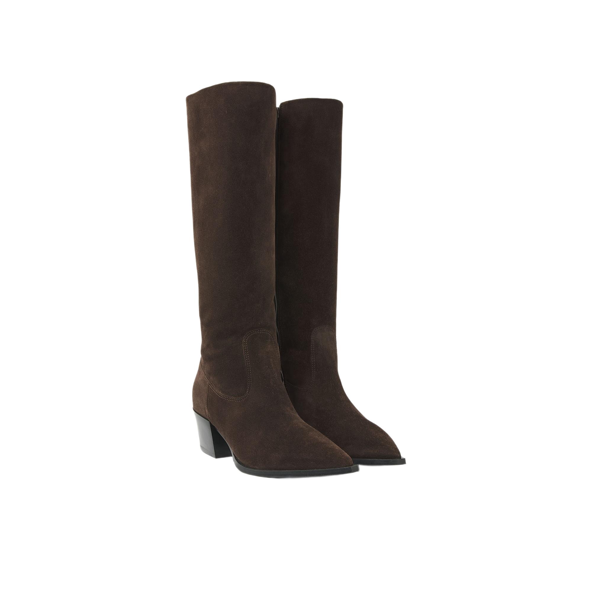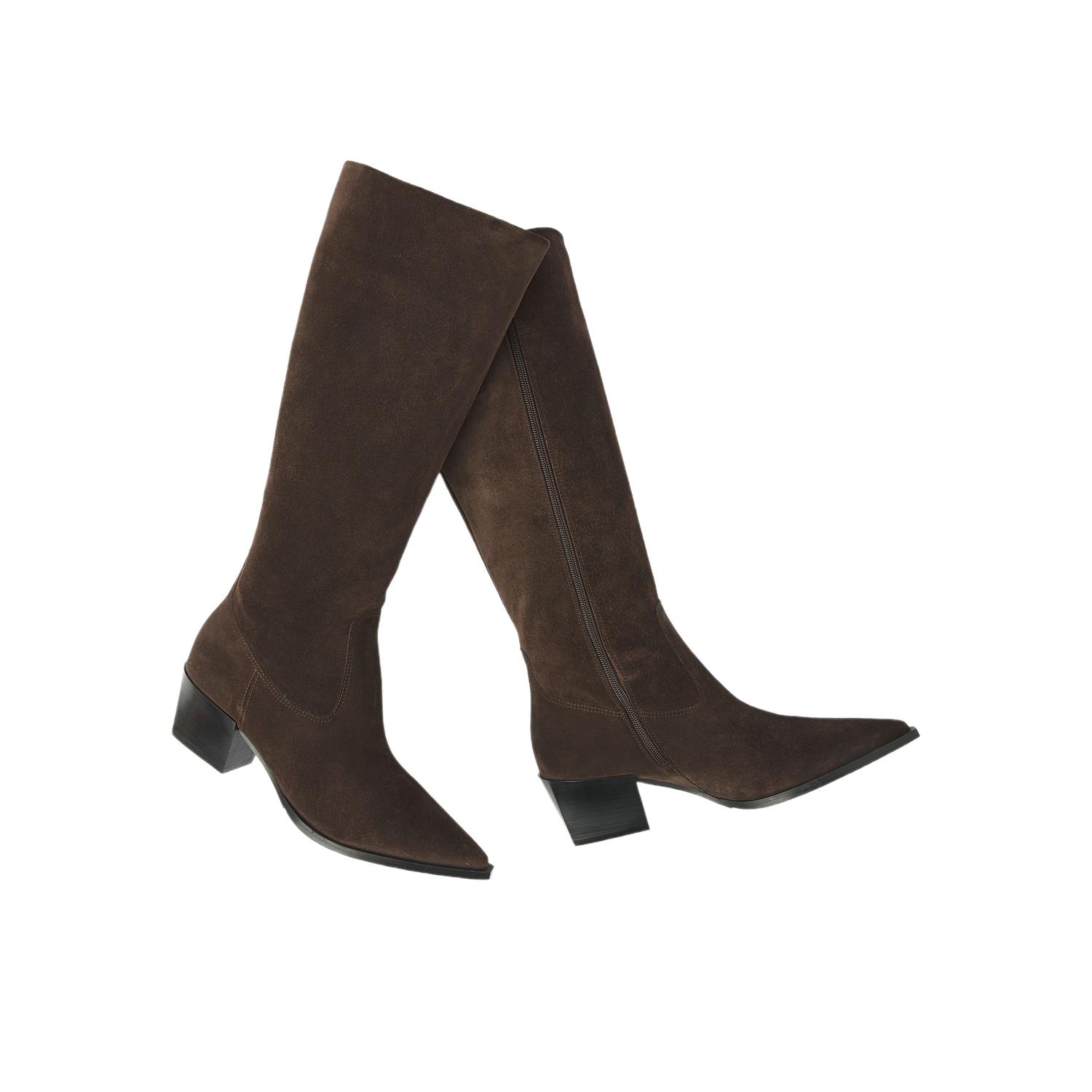De buitenkant is uitgevoerd in suede, wat de laars een zachte, luxe look geeft. Aan de binnenkant is gekozen voor leer, prettig voor een hoogwaardige feel. Dankzij de rits stap je gemakkelijk in en uit, ideaal wanneer je snel de deur uit wilt.