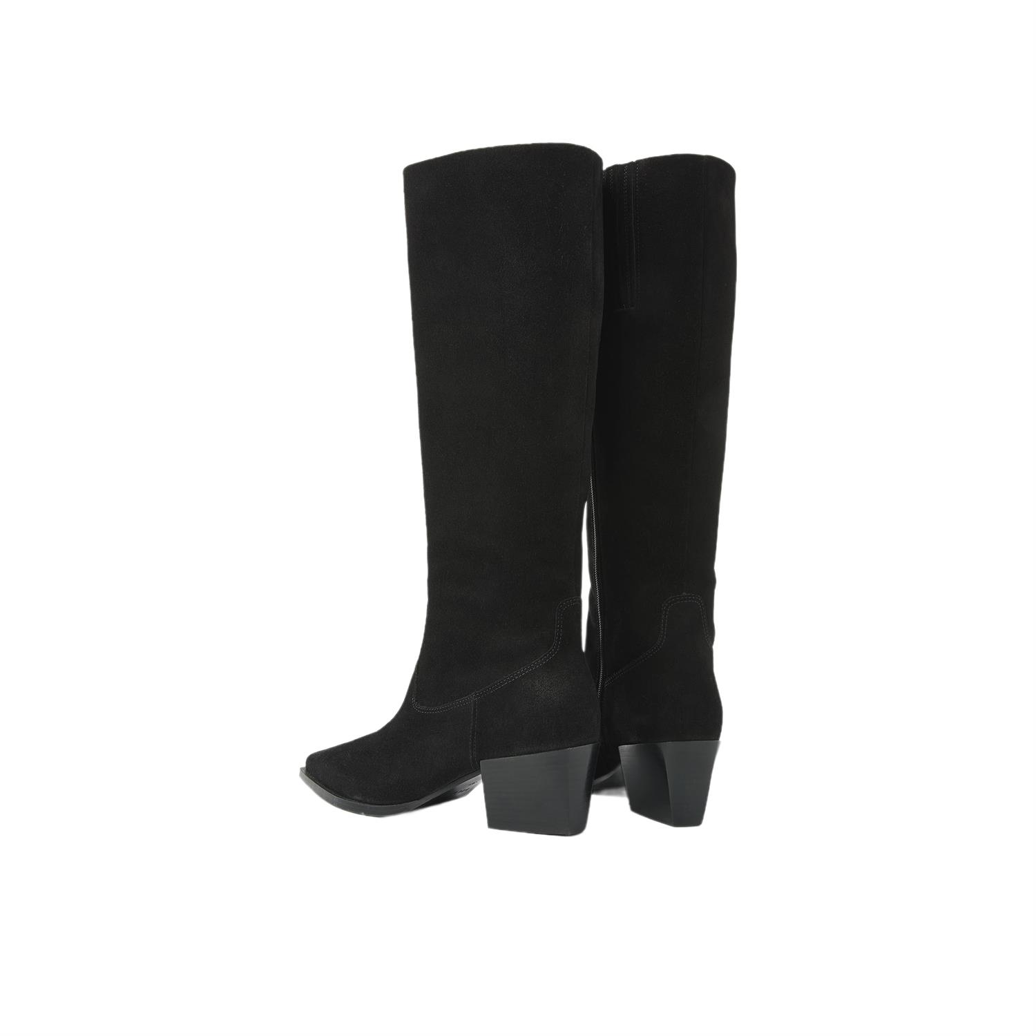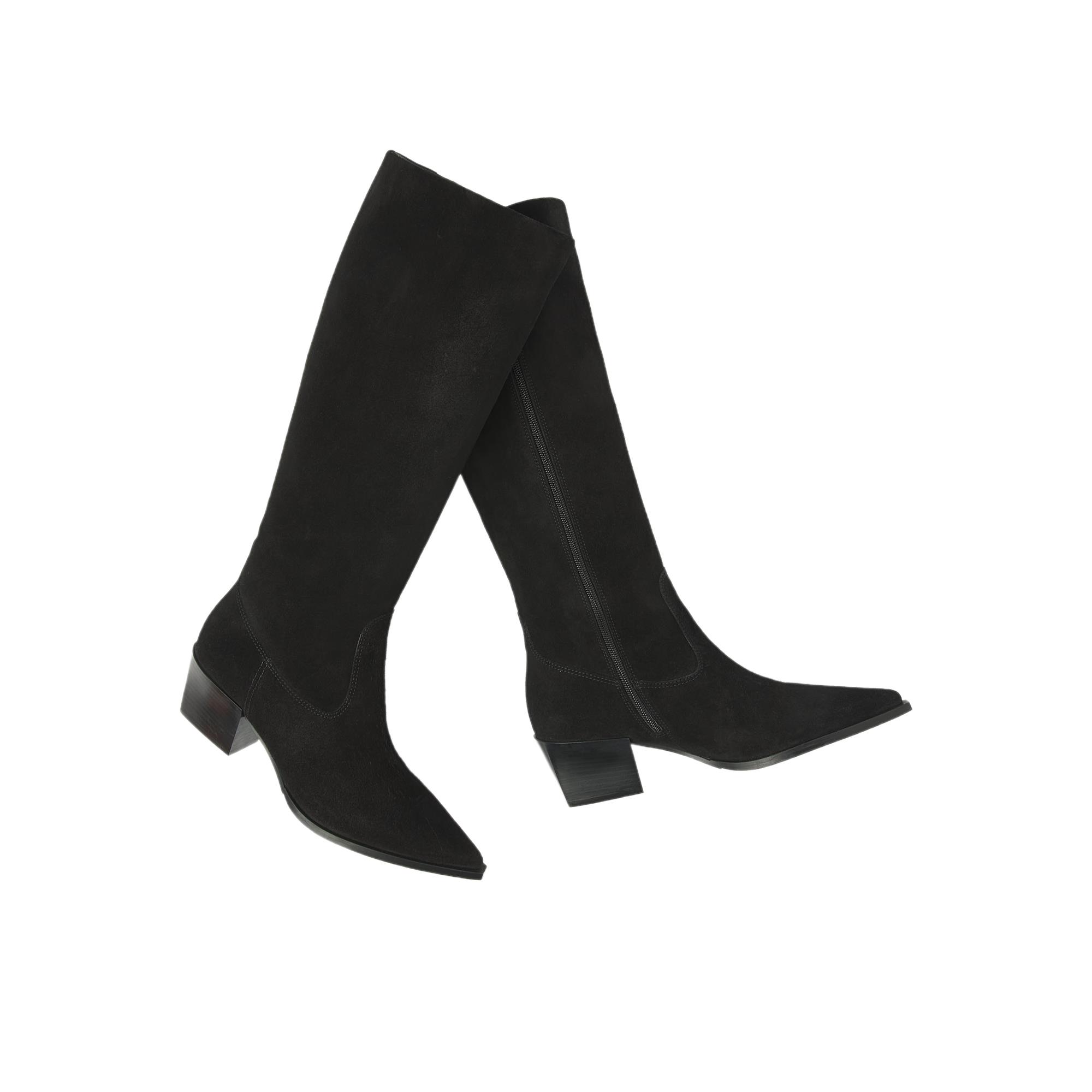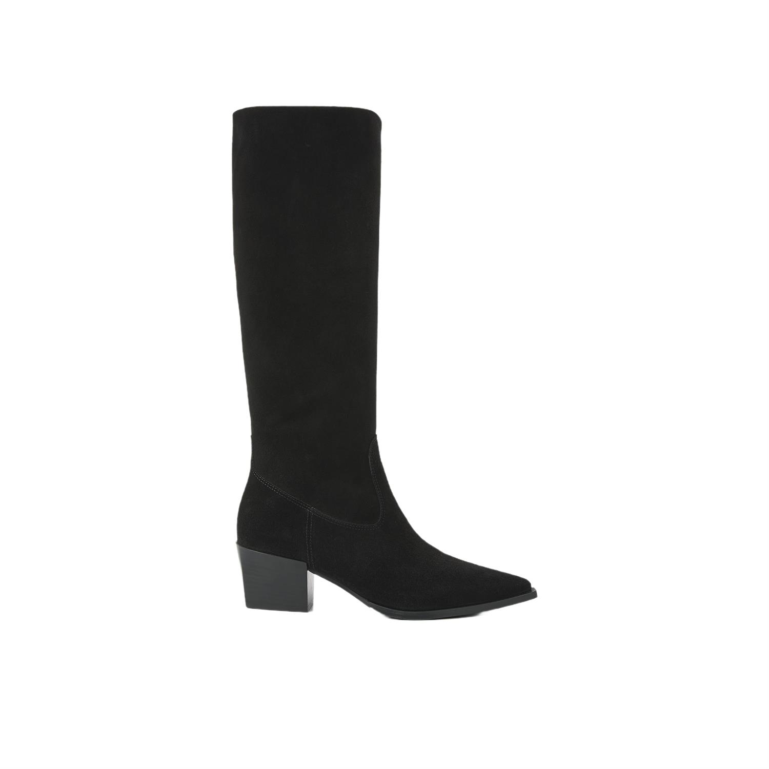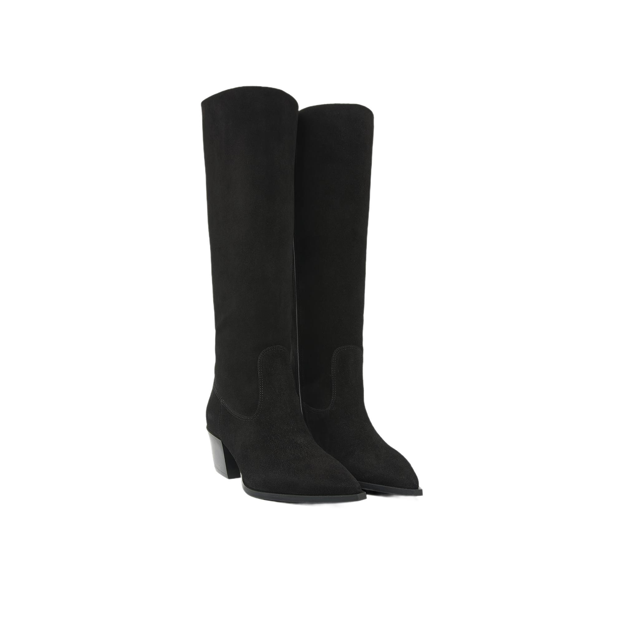 De buitenkant is uitgevoerd in suede, wat de laars een zachte, luxe look geeft. Aan de binnenkant is gekozen voor leer, prettig voor een hoogwaardige feel. Dankzij de rits stap je gemakkelijk in en uit, ideaal wanneer je snel de deur uit wilt.