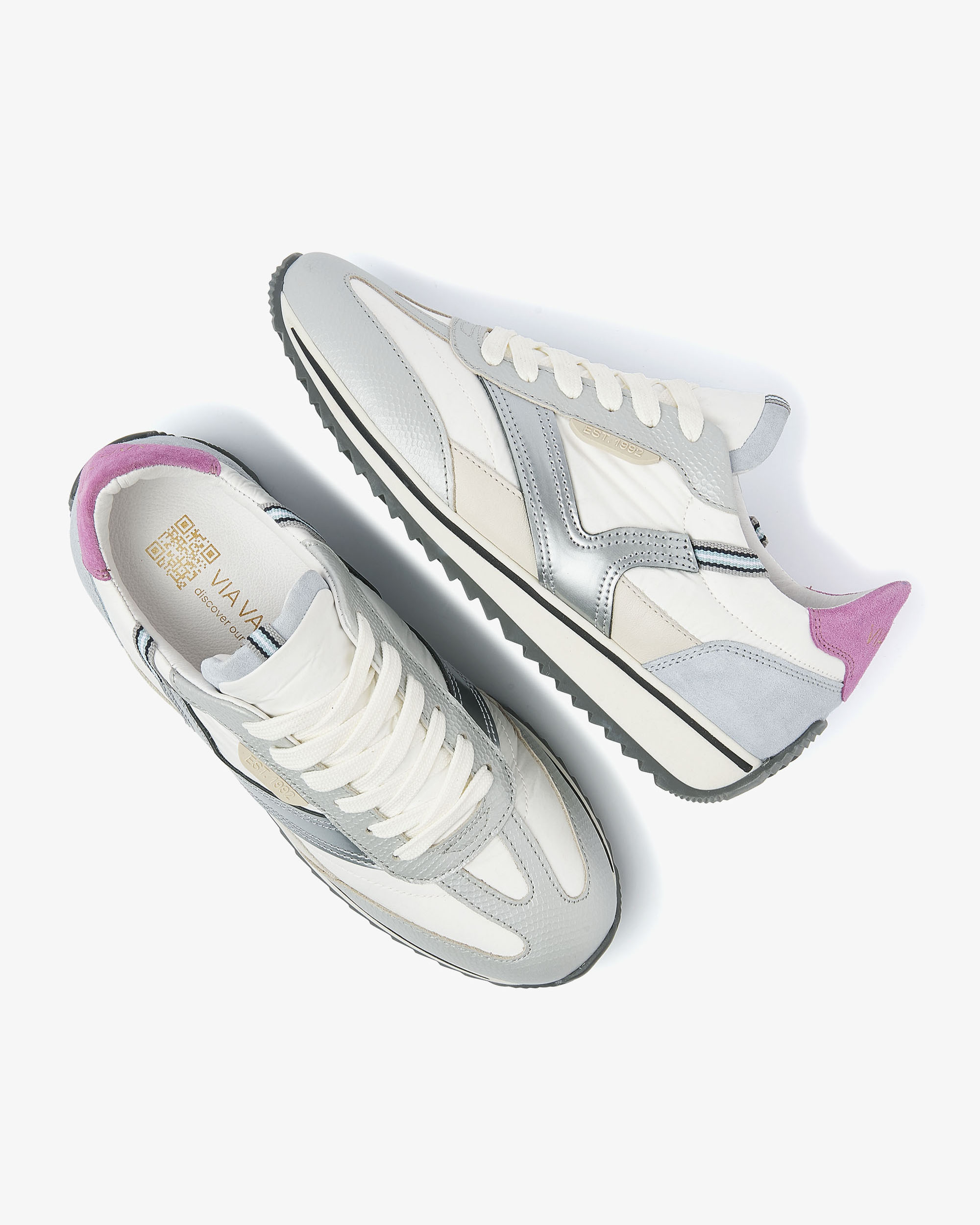 Binnenin is de schoen afgewerkt met stof, prettig voor een licht en zacht gevoel rondom de voet. De rubberen zool zorgt voor een stevige basis, terwijl de vetersluiting je de mogelijkheid geeft de pasvorm naar wens te strikken. Een eigentijdse VIA VAI-sneaker die je moeiteloos meeneemt van casual naar net wat gekleder, zonder aan nonchalance in te leveren.