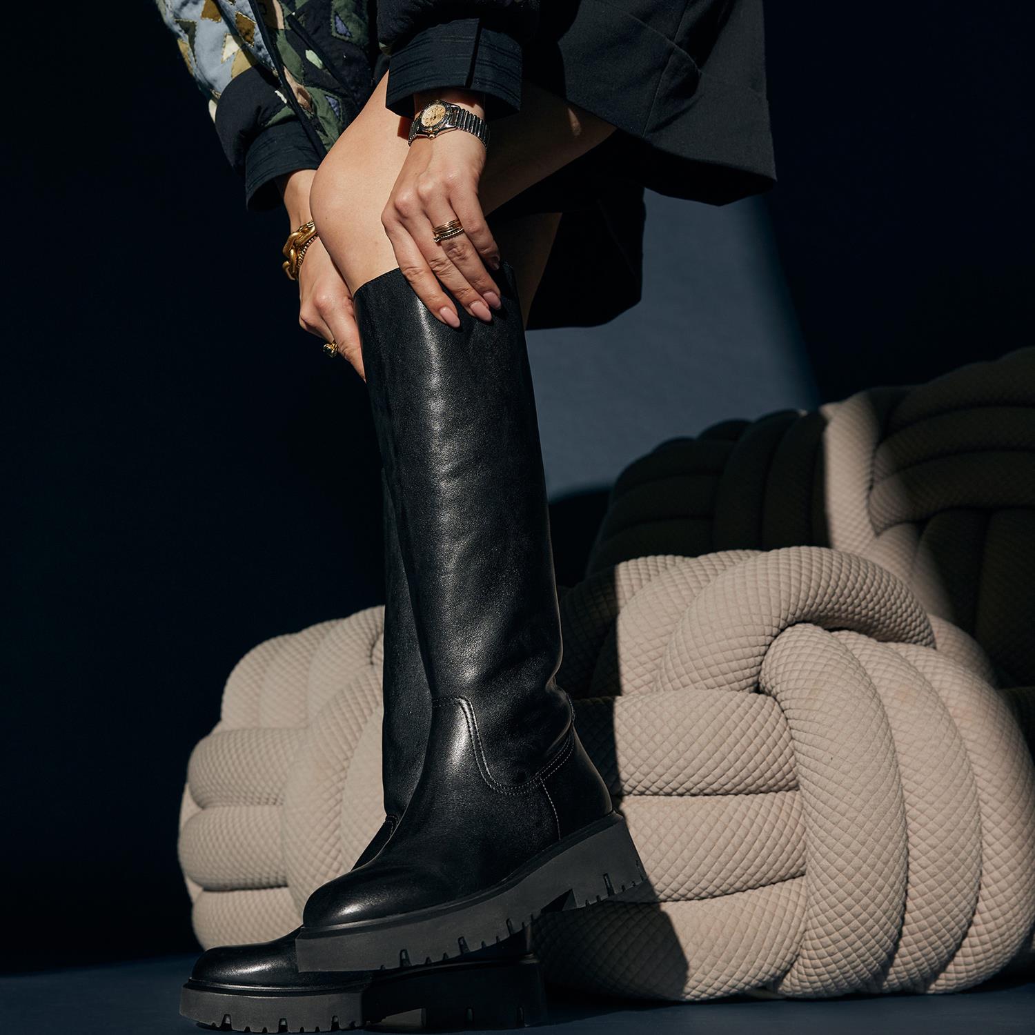 De schacht valt op de knie en sluit met een rits, zodat je de laars gemakkelijk aan- en uittrekt. Een elegant model dat in de winter moeiteloos combineert met zowel een jurk als een strakke broek, en daarmee een vaste waarde wordt in je garderobe.