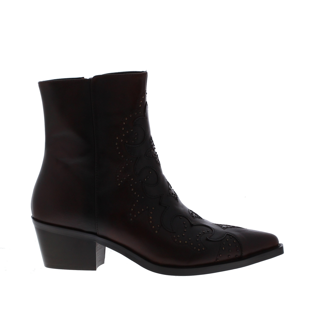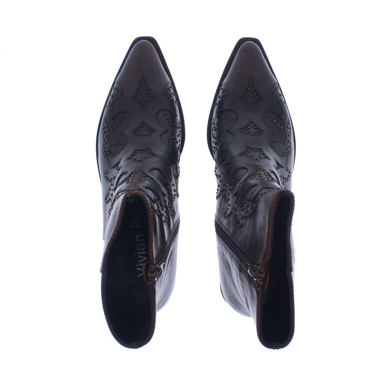 De Vivian Ray Carlotta is een enkellaars met een stoere uitstraling en subtiele westerninvloeden. Het model is uitgevoerd in soepel bruin leer en voorzien van kleine studs, wat de laars een moderne en eigenzinnige look geeft.