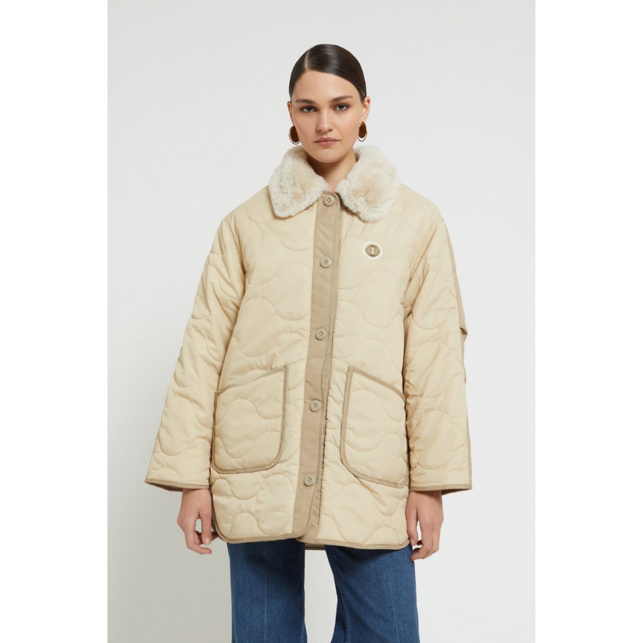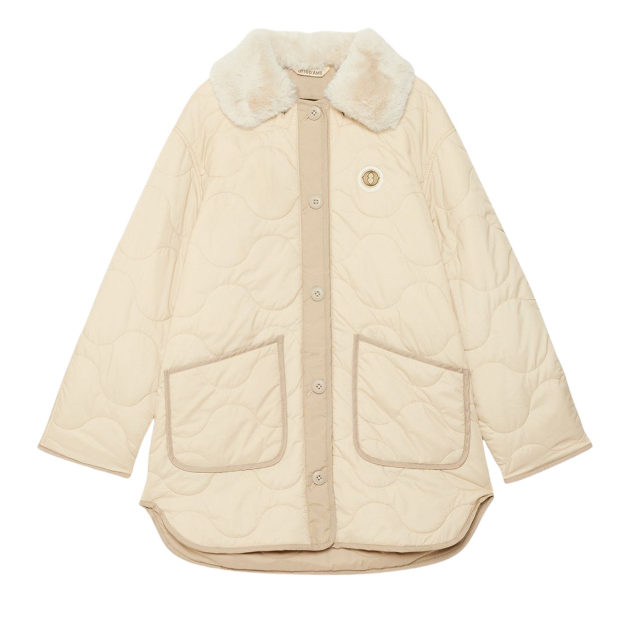 Midi Puffer Jacket with Hood Ecru