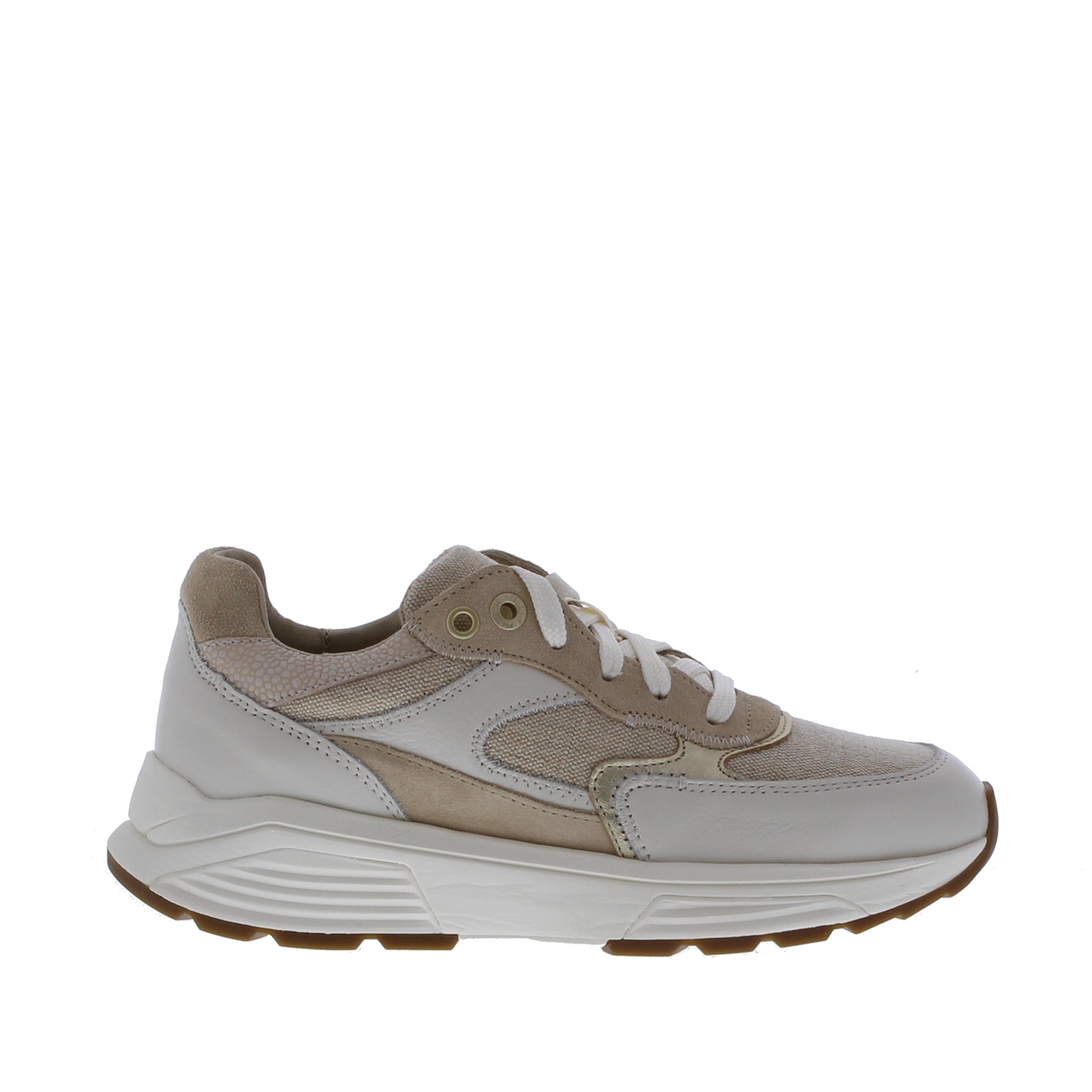 Ponte Vecchio Sneaker G is een elegante sneakers in beige, gemaakt voor een lichte, zomerse uitstraling met een verfijnde mix van materialen.